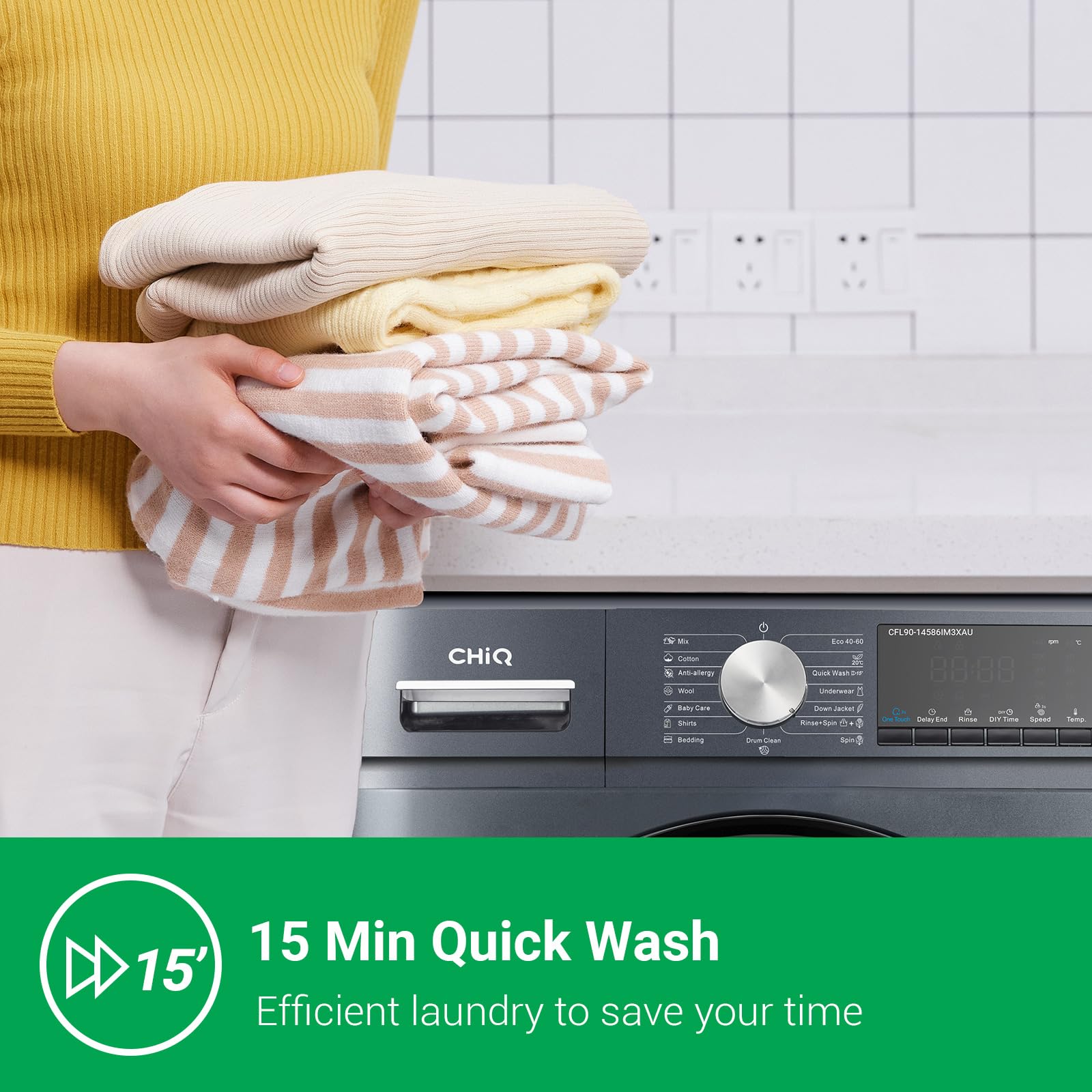 • Energy-efficient wash cycles -The CHiQ washing machine has been upgraded for improved energy efficiency, resulting in more efficient and environmental friendliness. A high spin speed (up to 1400 revolutions per minute) allows high spin speeds, releasing water and drying laundry more efficiently.