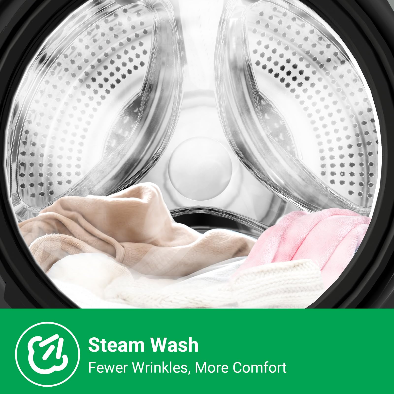 • High performance -It has a silent inverter motor and 16 wash programs, including steam, mixed fabric, cotton, baby, 15-minute quick wash, and drum wash programs. It is suitable for all fabric types and regular washing needs. With the one-touch washing function, you can quickly and efficiently wash with a simple touch, enhancing efficiency and versatility.