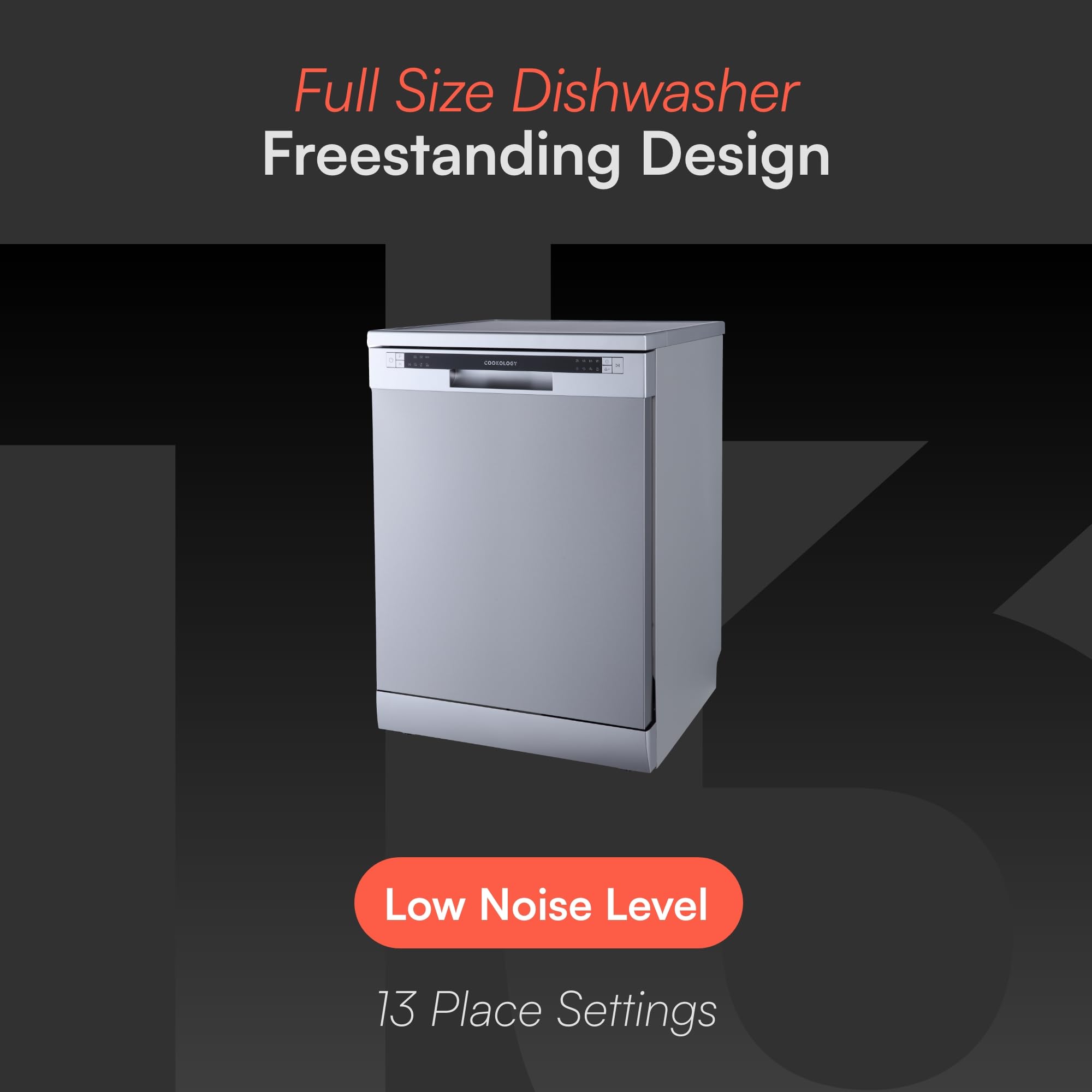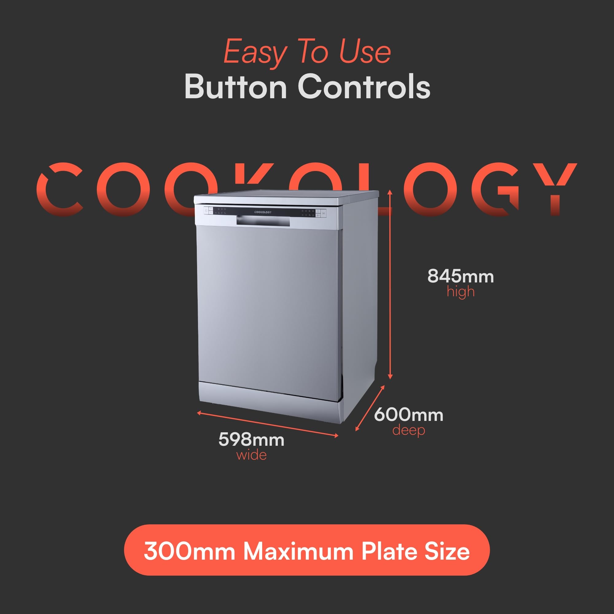 Cookology CFSD613SS 60cm Wide Freestanding Full Size Undercounter Dishwasher, 6 Programme Settings with Eco Mode
