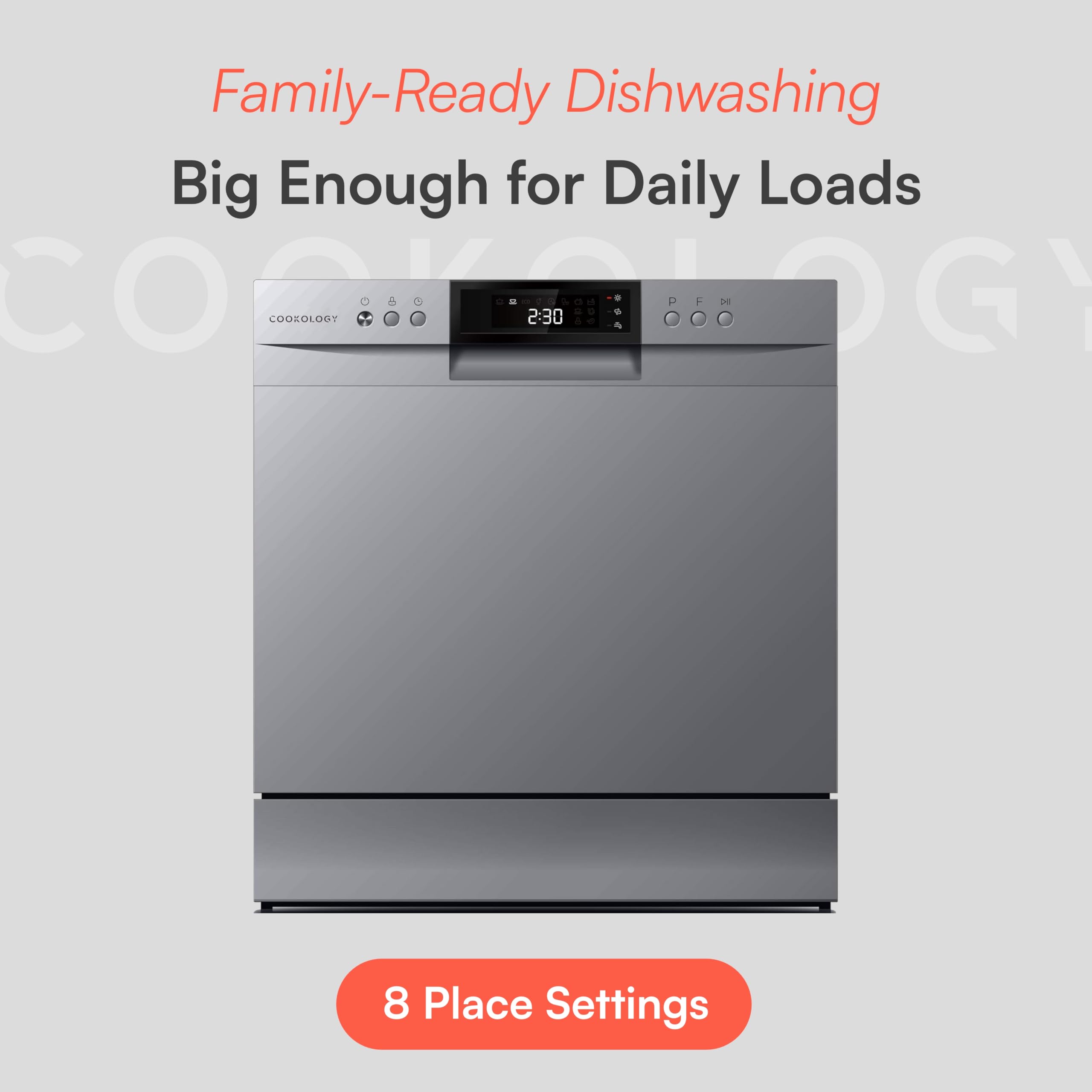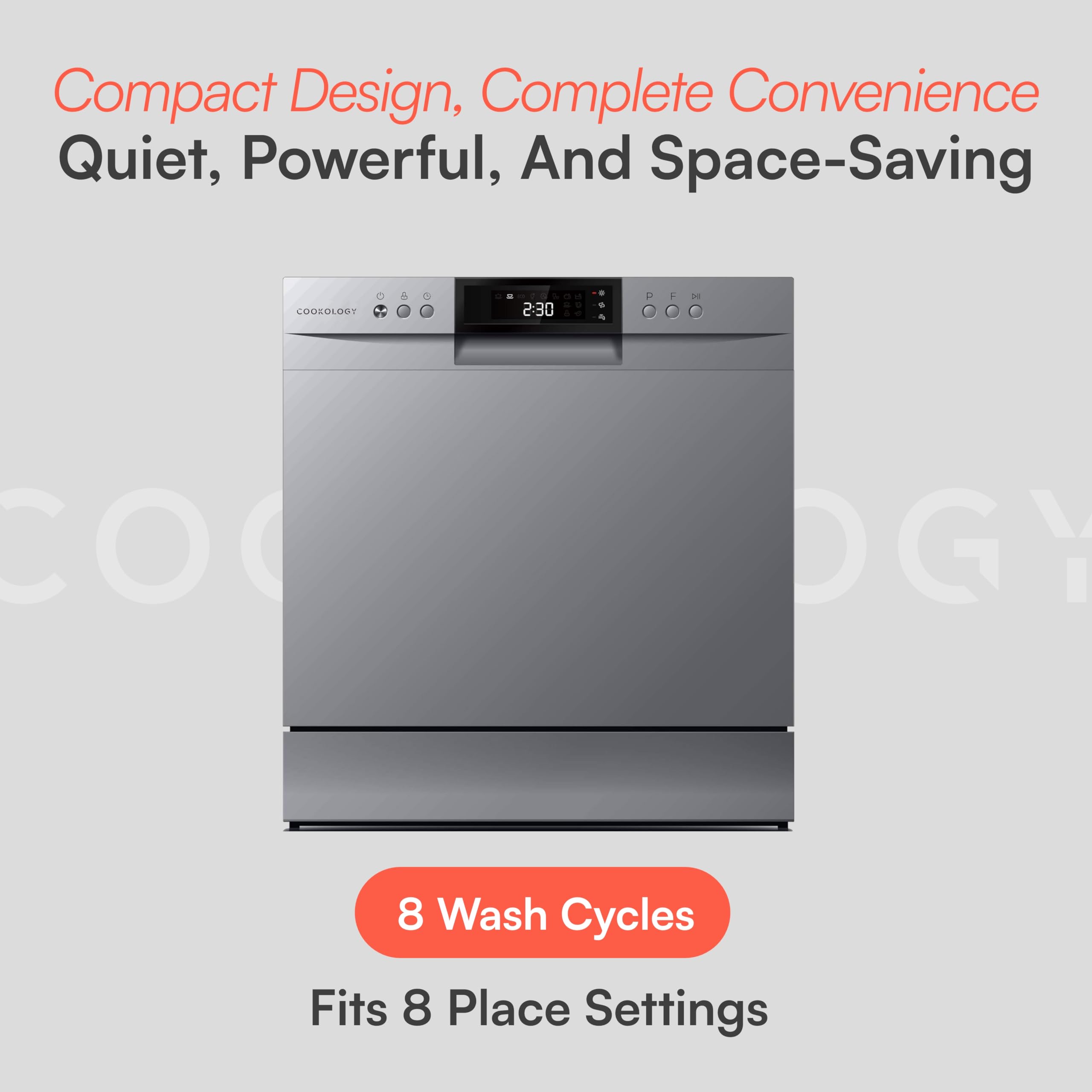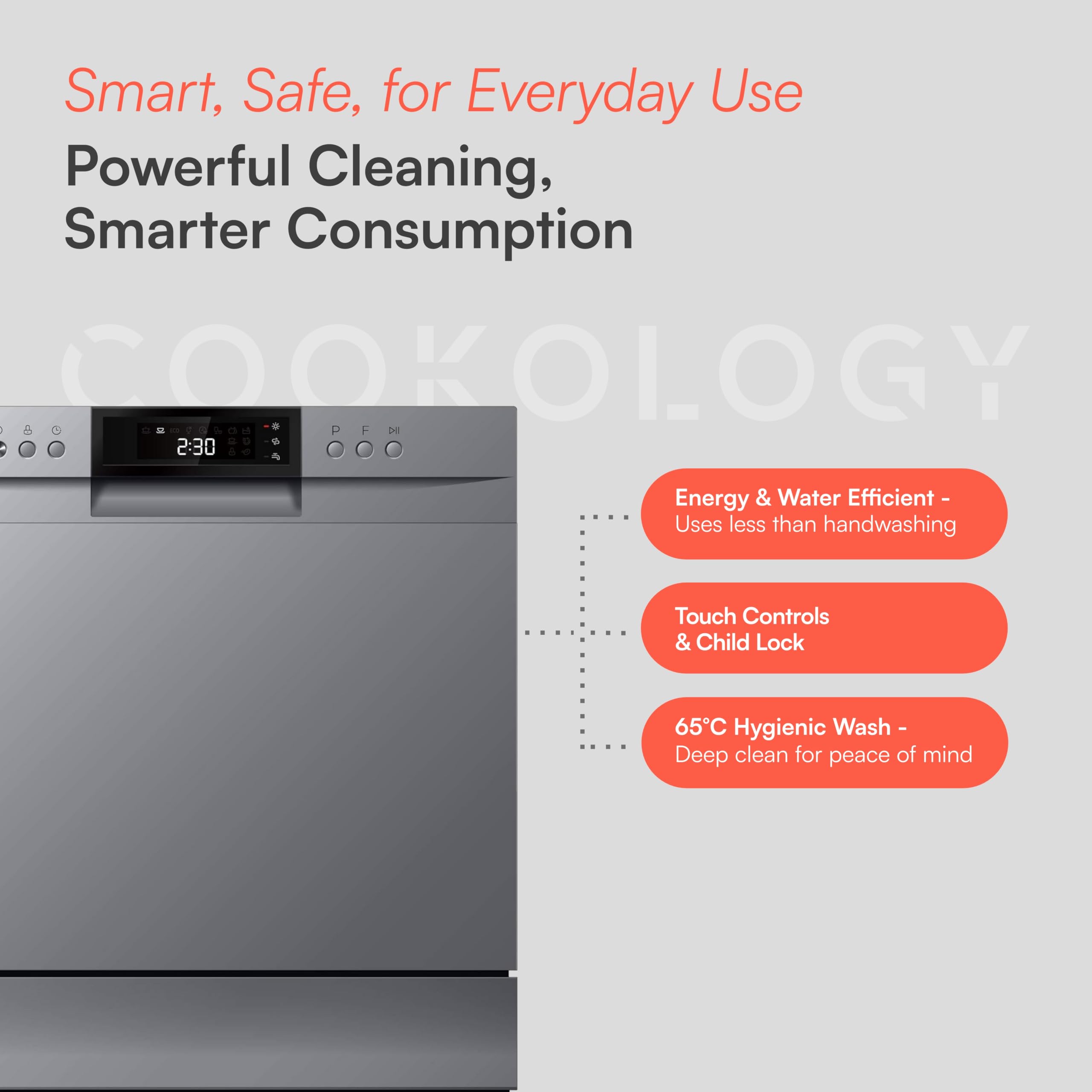 Cookology CTTD8SL-b Mini Counter Top Dishwasher in Silver – 8 Place Setting Capacity – Table Top – Compact Design – 7 Wash Cycles