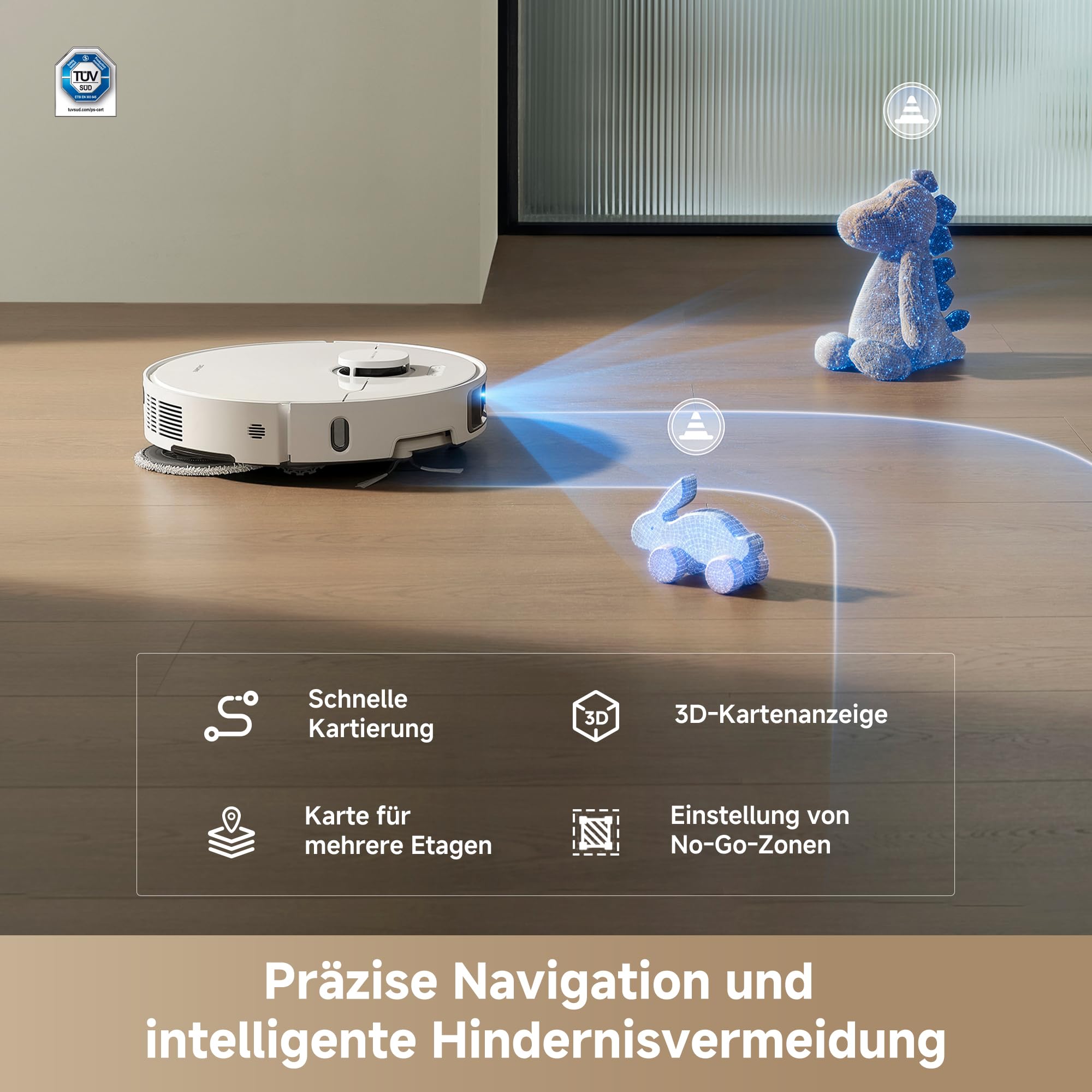 - Geringerer manueller Wartungsaufwand: Die selbstreinigende All-in-One-Dockingstation optimiert das autonome Reinigungserlebnis.