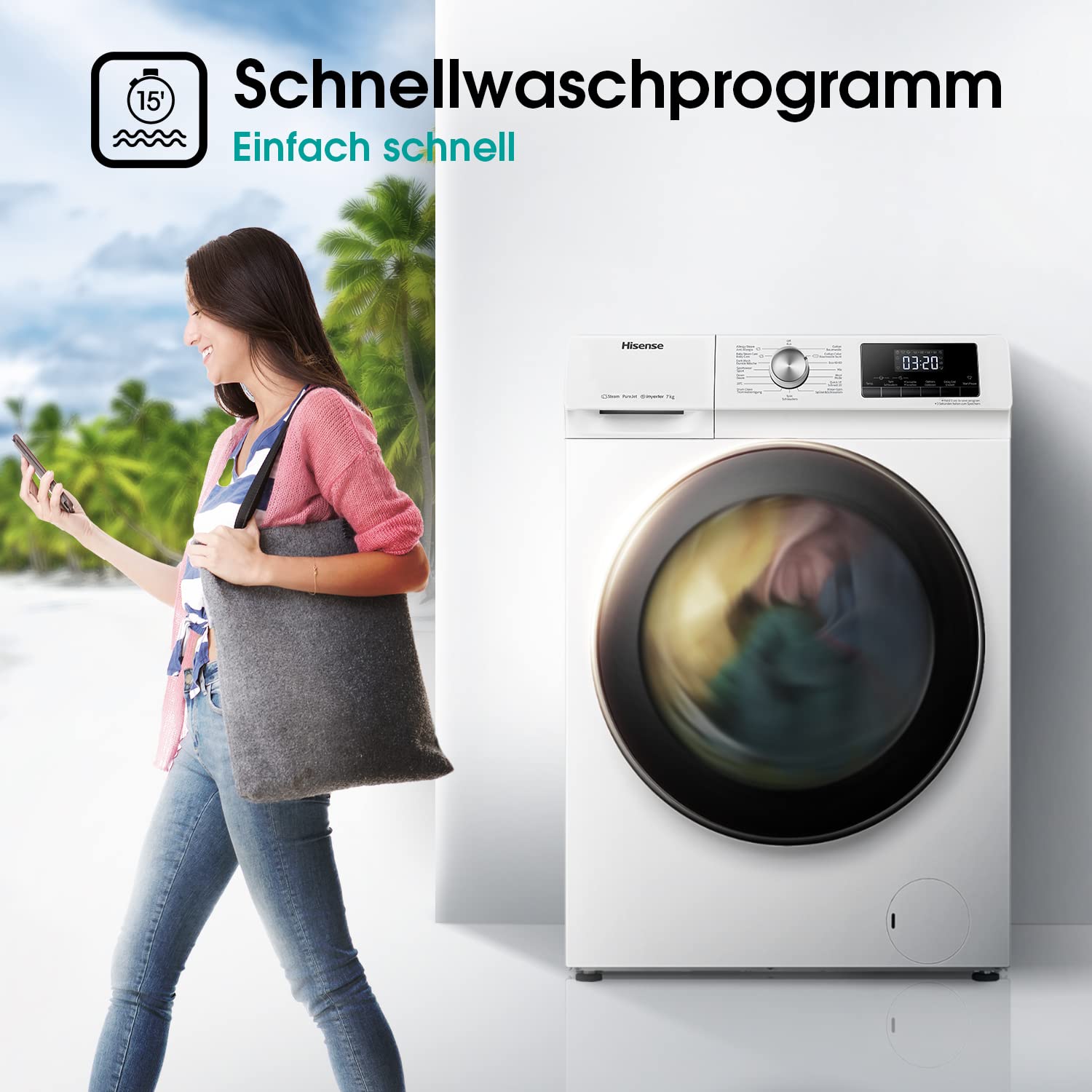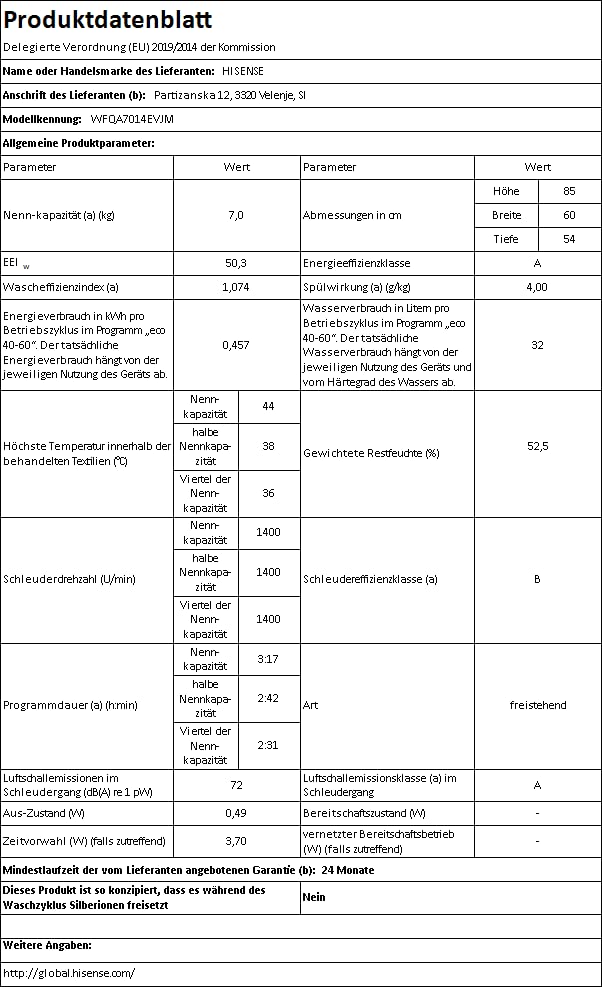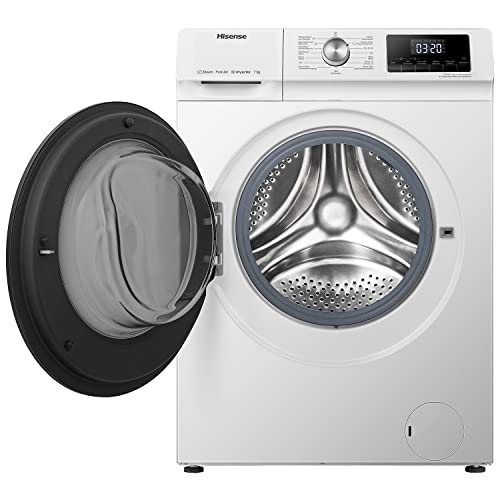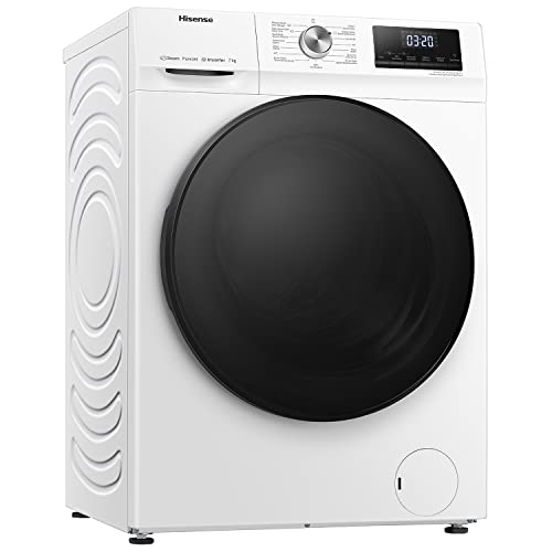 - Hisense WFQA7014EVJM Waschmaschine mit Dampffunktion/ 7 kg /AquaStop/ 1400 U/min /15 Programme/ Inverter PowerDrive Motor/Edelstahltrommel/Kindersicherung/Trommelreinigung/Weiß