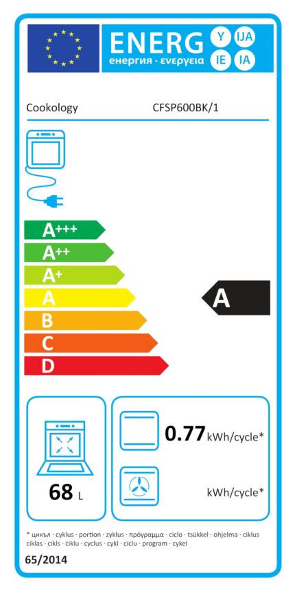 Cookology CFSP600BK/1 Freestanding Electric Single Cooker in Black – Solid Plate Top – 68 Litre Capacity – 60cm Wide – 4 Cooking Zone Hob